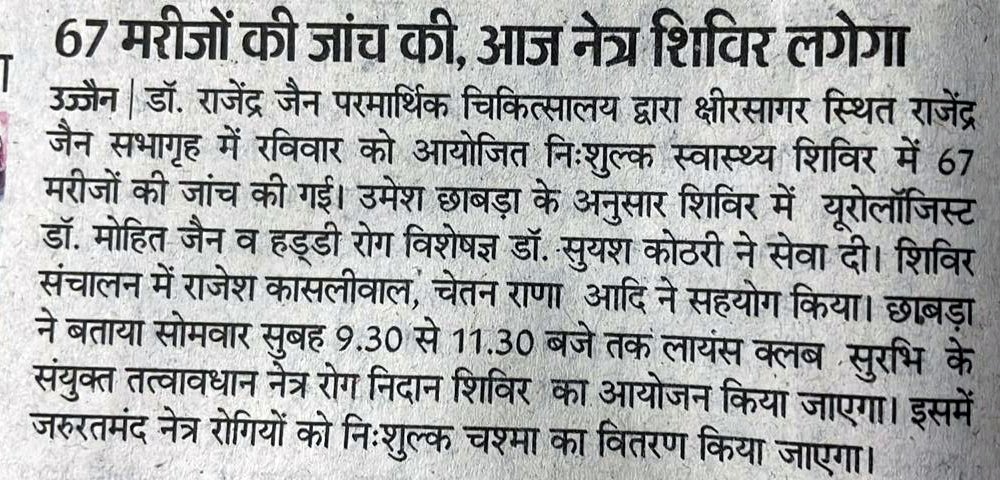 स्व. डॉ. राजेन्द्र जैन ने स्थानीय से अंतरराष्ट्रीय स्तर पर सक्रिय होकर राजनीतिक, सामाजिक, धार्मिक, विधिक, मैत्री आदि क्षेत्रों में जो सार्थक और बहुमूल्य योगदान दिया है उससे न केवल उज्जयिनी का वरन संपूर्ण मध्यप्रदेश एवं भारत का गौरव बढ़ा है। उज्जैन को संभाग का दर्जा दिलाने में डॉ. राजेन्द्र जैन की महत्वपूर्ण भूमिका रही।